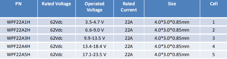 用于电动自行车、电动二轮车车、电动三轮车、电动汽车、储能设备等大电流充电或放电需求的锂电池上,比传统的一次性保险丝更安全、更可靠。